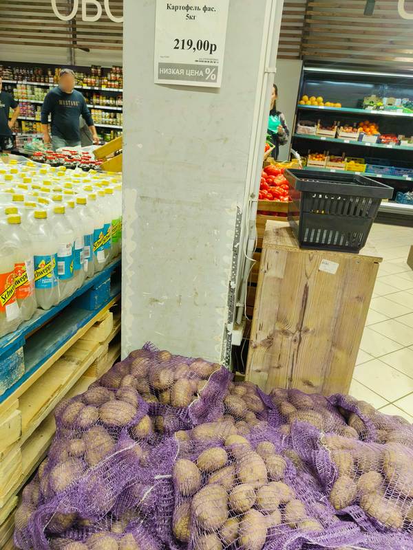 По этой причине рядом может соседствовать картошка по цене 219 рублей за 5-килограммовую сетку и по цене 39 рублей за 1 килограмм.