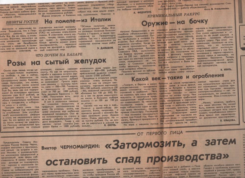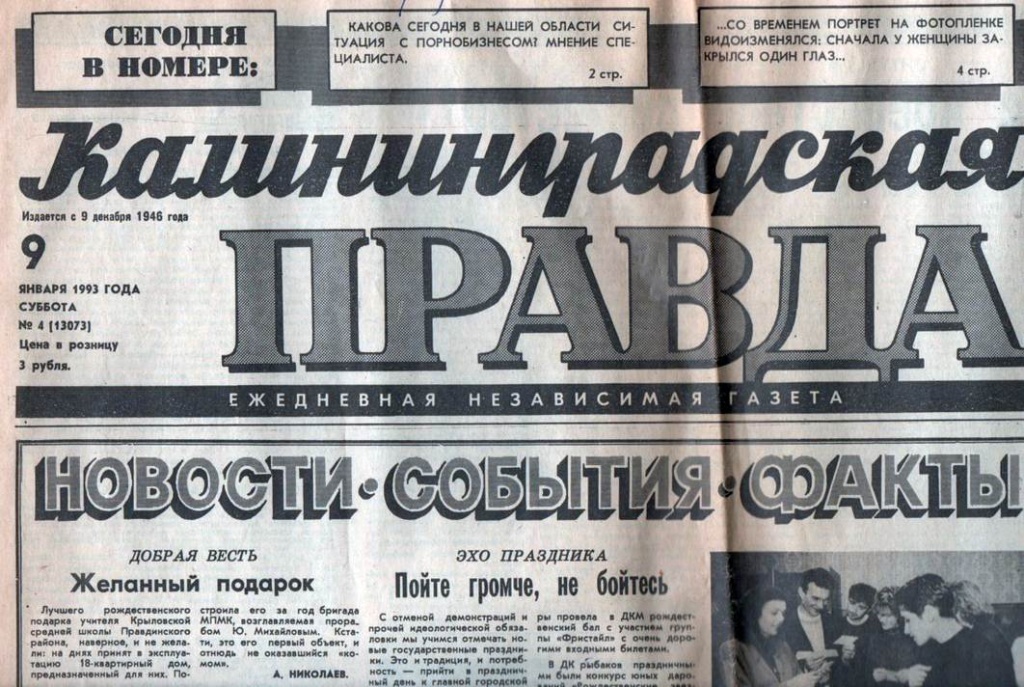 Любопытный экскурс в прошлое даёт выпуск газеты «Калининградская правда» от 9 января 1993 года.
