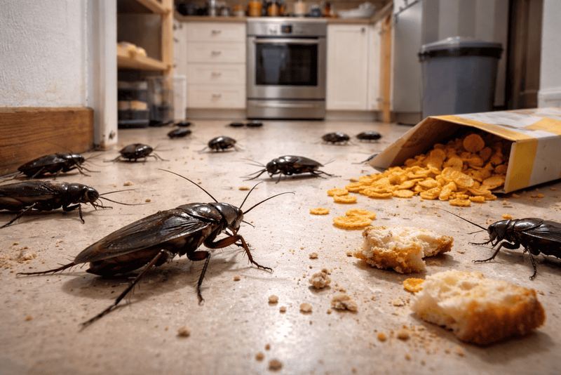 Черные тараканы в квартире - это не просто неприятное соседство. Они контактируют с канализацией, мусором, сырыми подвалами и затем перемещаются по кухонным поверхностям, посуде, местам хранения продуктов. Из-за этого возрастает риск переноса бактерий и загрязнений.